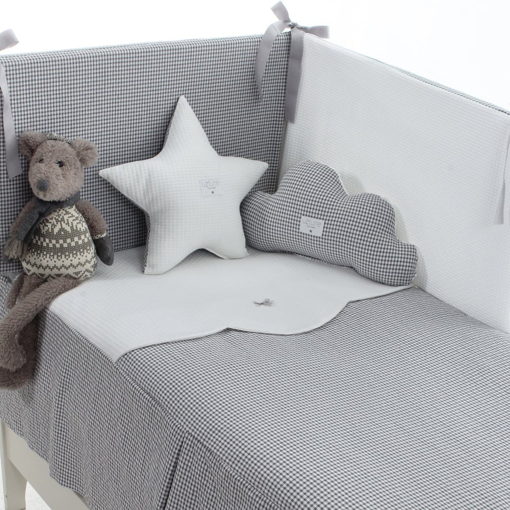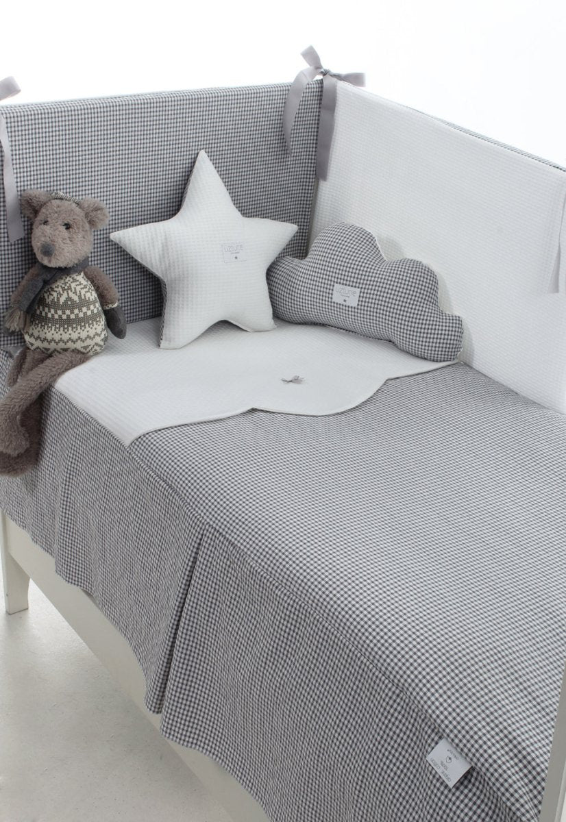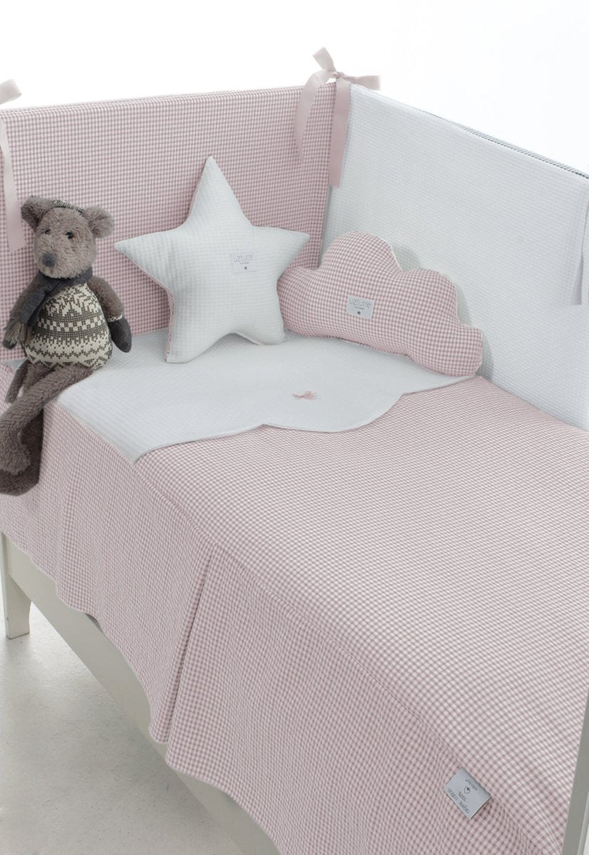 Pack de colcha + Chichonera protector para cunas. Los cojines y peluche no van incluidos en el precio. Se venden aparte.