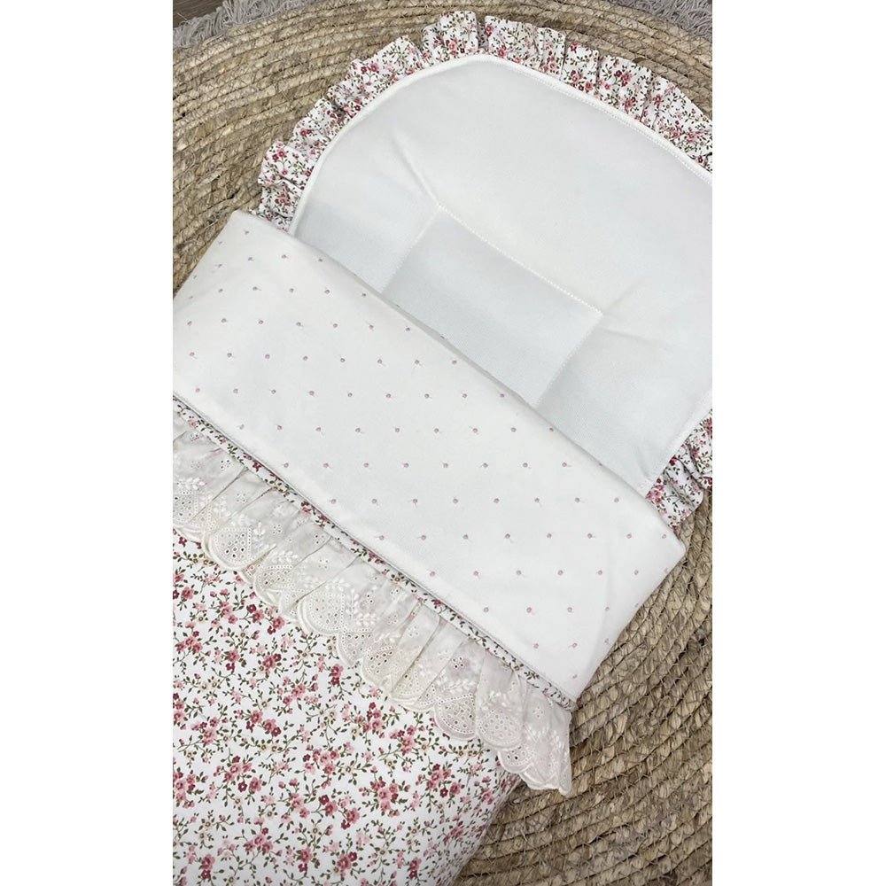 Saco capazo personalizado con estampado Florecitas 184. Confeccionado a medida para adaptarse perfectamente a tu capazo. Diseño exclusivo que combina funcionalidad y estilo. Ideal para paseos cómodos y seguros durante cualquier estación.