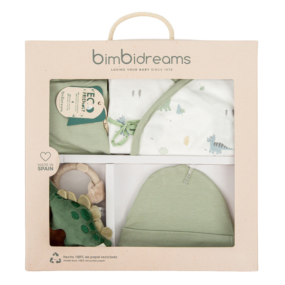 Pack de primera puesta, con conjunto de 2 piezas, gorro. Todo confeccionado con algodón 100% orgánico.